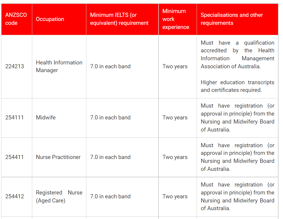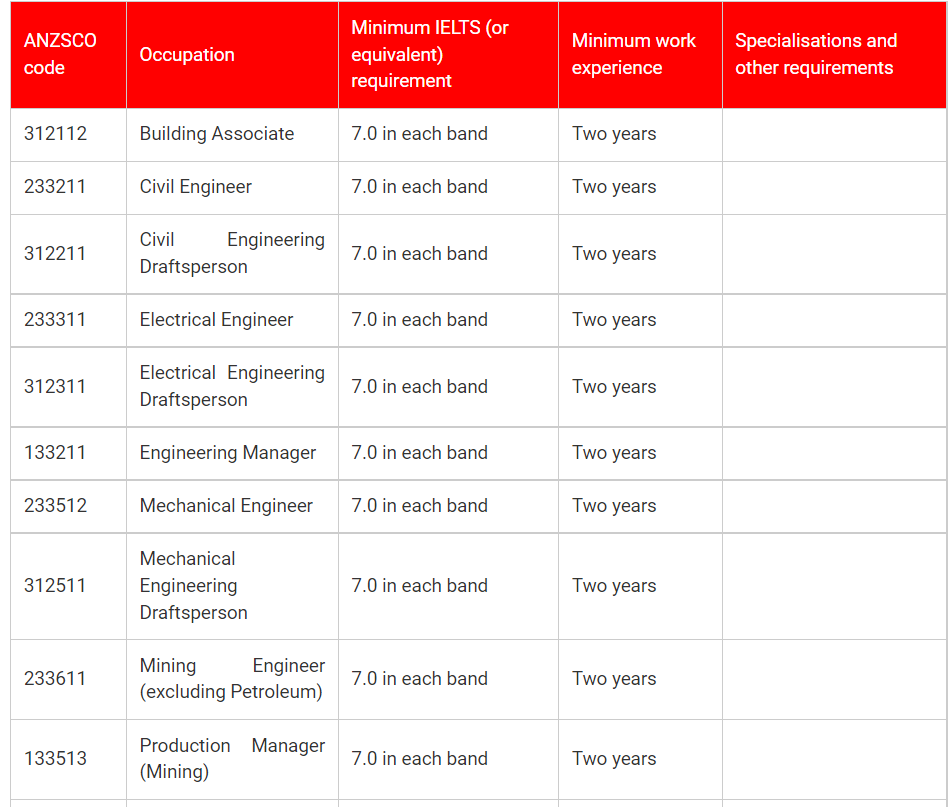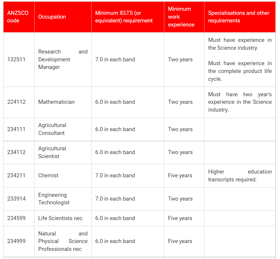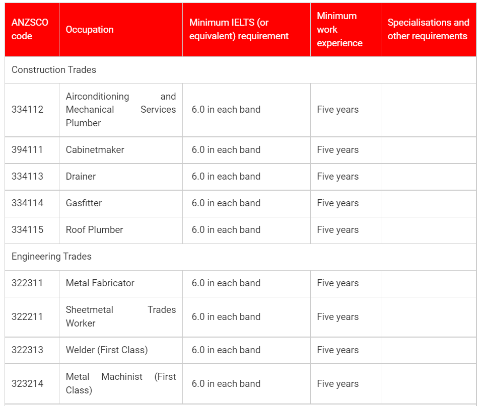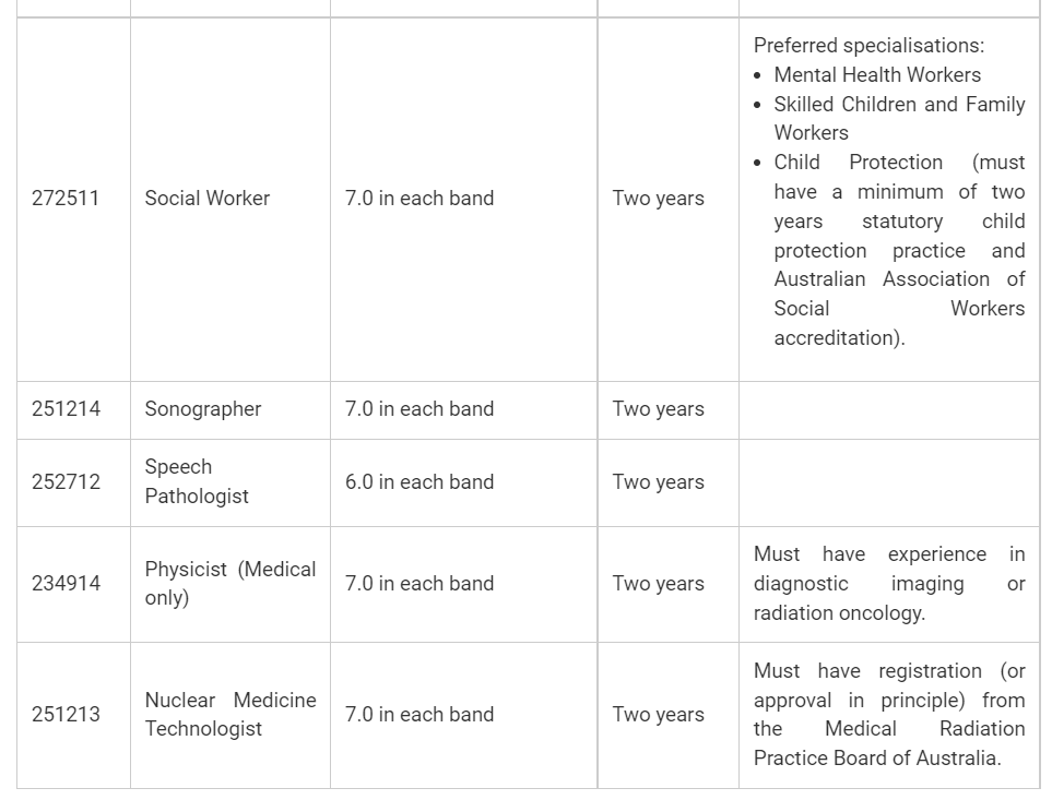 Australia New Skilled Occupation List