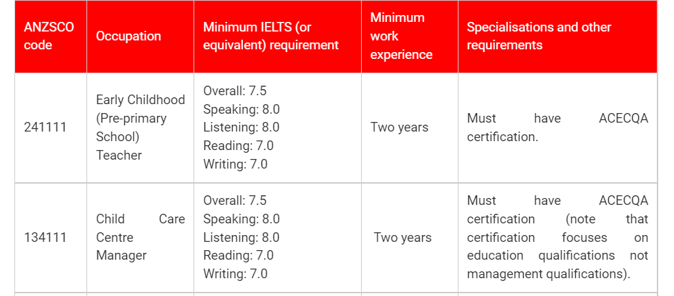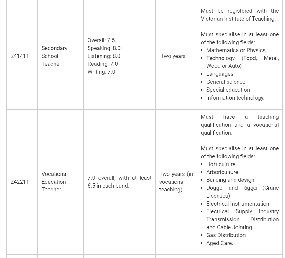 Occupations eligible to apply for Victorian state visa nomination